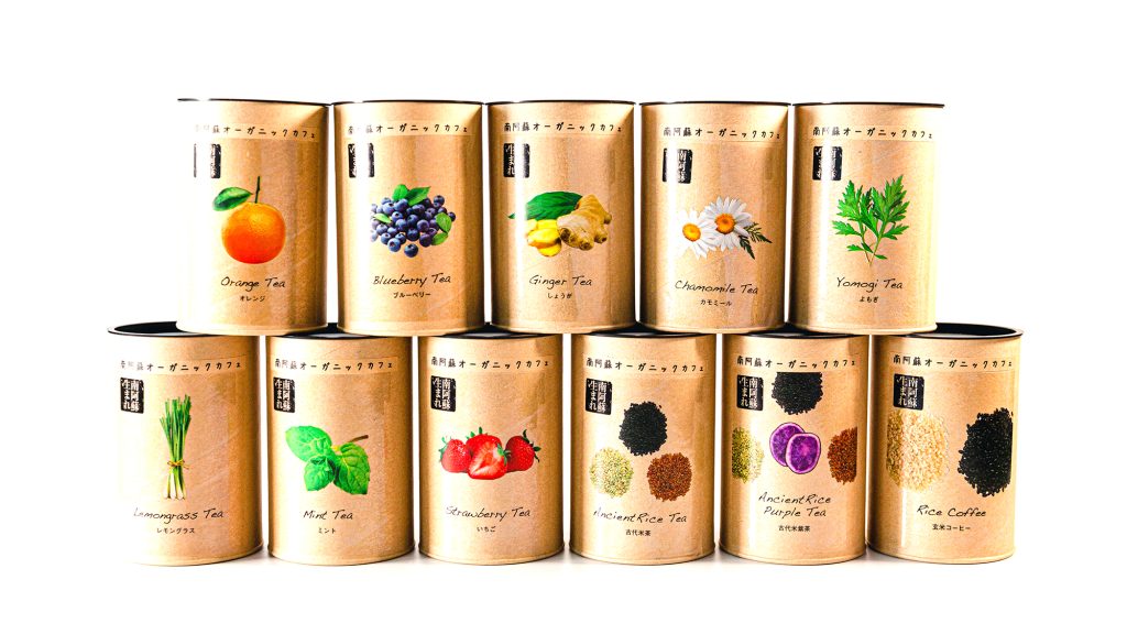自社のハーブを主に美味しいオリジナルブレンドのハーブティーとハーブウォーターを取り揃えています。